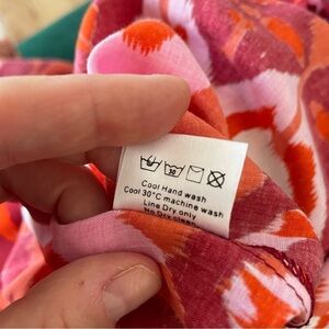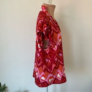 Feather & Find Ruffle Trim Tie V-Neck Red Multi Printed Rayon Paradiso Top EUC S