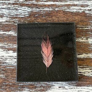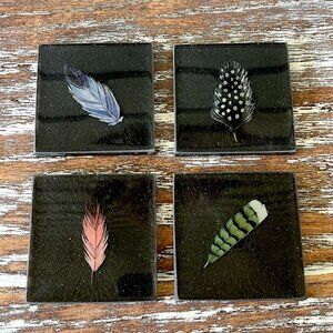 This set of 4 beautiful Bird Feather inspired resin drink coasters is made with love by me! Use to protect table from drink rings and also doubles as a beautiful piece of art!