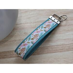 Feather Keychain Wristlet Handmade Boho Fabric Key FOB Sturdy Farmhouse Teal