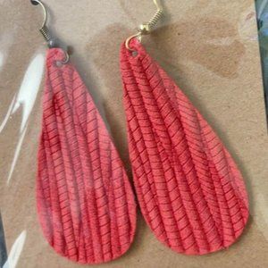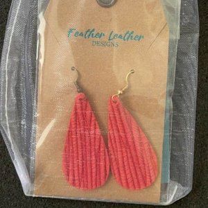 Feather Leather Burnt Orange Textured Leather Earrings Pierced Fishhook 2" long