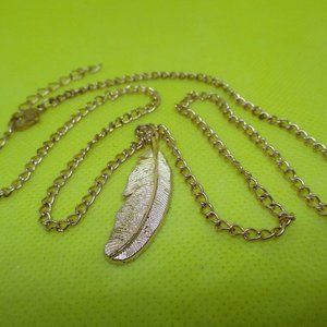 Feather Necklace Rose Gold Tone Metal Feather Pendant Necklace W Extension Chain