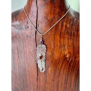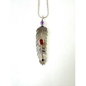 Feather Pendant Amethyst Imperial Garnet Blue Sapphire Sterling Silver