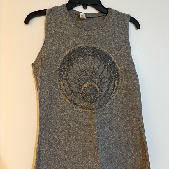 Super cute heather gray muscle tank featuring a metallic feather + moon graphic for a dreamy boho / western vibe. Soft, lightweight fabric with a relaxed sleeveless cut — perfect for summer outfits, concerts, festivals, layering, or casual everyday wear.