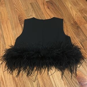 This top has never been worn! Black sleeveless with feather detail, does have zipper up the back