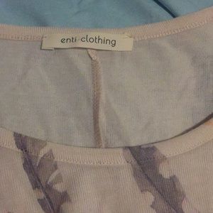 Adorable 1/3 sleeve tan sweater with feather print. Like new condition, no marks or damage. Only worn once for a couple of hours. Perfect with jeans and boots for fall. Has a curved hemline.