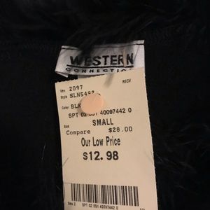 Western connection brand. Black feathered long sleeve top. Size Small. Brand new.