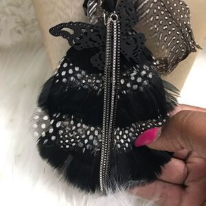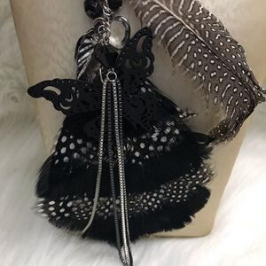 Ladies super cute feather native style necklace and earrings set with tassels. Chain 24” long charm length 8” earrings 3.5” length. New with tags.