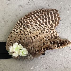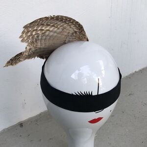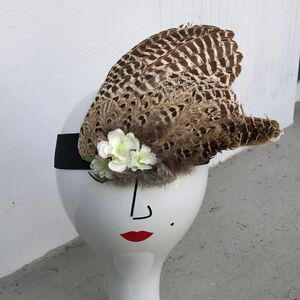 This is an elastic feather headband. Check out the pictures. Fold it in half the headband is 10.5 inches approximately. Wear it as is or a band on a hat that you might have. Width of the feathers is 8.5 x 7. Headband is 1.5 inches wide.