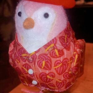 Pink felt bird. dressed in Valentine fabric. cute bedroom decor year-round or for Valentine's Day.
