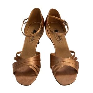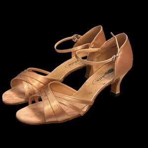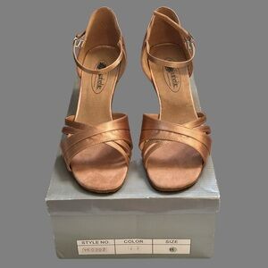 Featherlite Ballroom Dance Shoes Style: SARA Size 11 M Nude Satin 2.2” Heel NIB