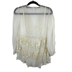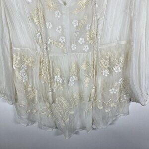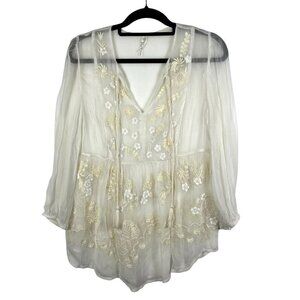 Feathers Bone By Anthropologie Embroidered Ivory Boho Blouse Women’s Size Small