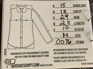 Measurements :Shoulder to Shoulder: 15 Chest ( Arm Pit to Arm Pit ) 18 Length: 28 Sleeve: 17 Hem: 29 Size: Medium Sku: B2-(0076)