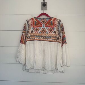 Feathers by Tolani Medium Embroidered White Tie Front Blouse New without Tags