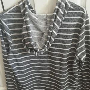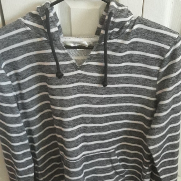 A light pullover jacket with hood size large has turtle and daytona beach insignia on back