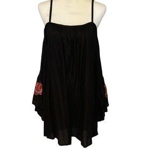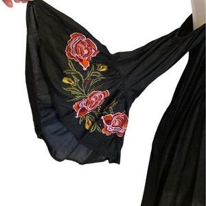 Feathers black off-the-shoulders rayon top with gorgeous embroidered trumpet sleeves. New with tags. Size small.