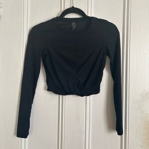 Featherweight Center Stage Cropped Long Sleeve Pullover in Darkest Night