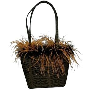 Feathery Handbag Attention Getter Brown Black Evening Bag Shoulder