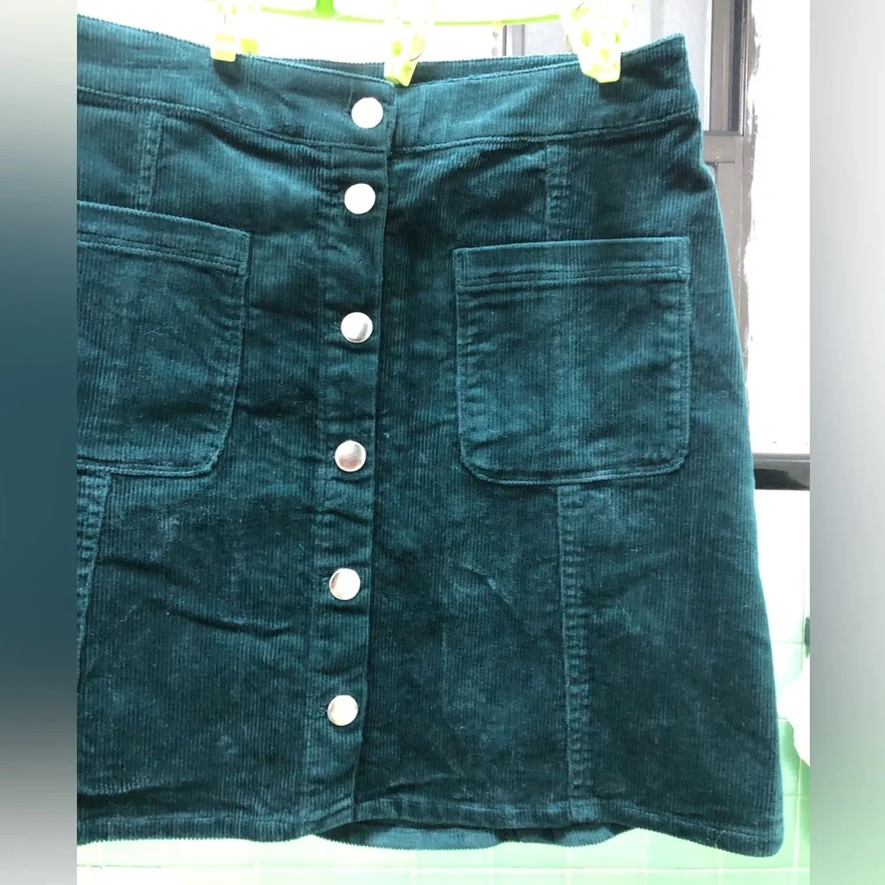 Waist-31” hips-36” long-17” Great condition with side pockets.