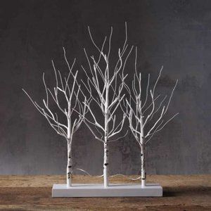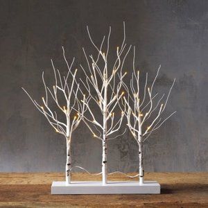 Featuring a trio of miniature, lifelike birch tree, our Faux Birch Mantle Triptych brings holid Realistic branches illuminated by white LEDs, add warmth to seasonal décor.