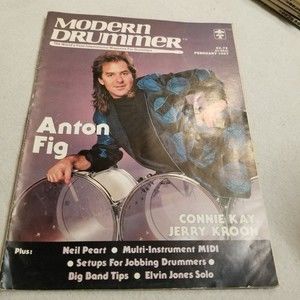 Feb. 1987 Modern Drummer mag Anton Fig, Connie Kay, Jerry Kroon. Plus Neil Peart, Setups for jobbing drummers... I have more of these listed.
