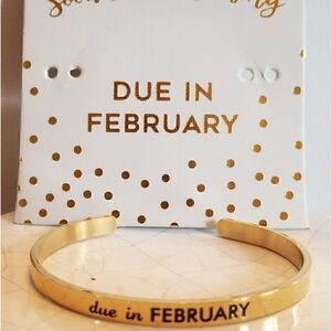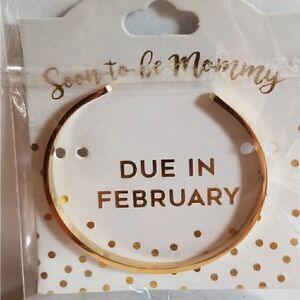 New Soon To Be Mommy Due In February Engraved Bracelet. Adjustable Stainless steel bracelet is 18k Gold plated. Brand new in package, only taken out for photos.