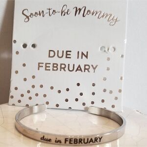 New Soon To Be Mommy Due In February Engraved Bracelet. Adjustable Stainless steel bracelet. Brand new in package, only taken out for photos.