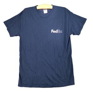 FedEx Employee T Shirt Womens Size M Blue Graphic Logo Spell Out
