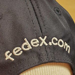 Keep the sun out of your eyes with this cool navy blue baseball cap featuring the iconic FedEx Express logo embroidered on the front. This hat features narrow purple detailing around the visor and an adjustable back for a better fit.