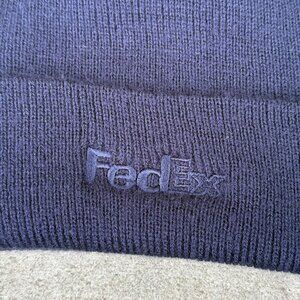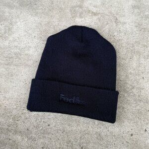 FedEx Knit Beanie Hat Navy Blue Cuffed Embroidered Logo Acrylic