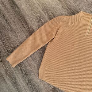 Gently worn but did have a small hole in it which has been repaired but is still somewhat visible. It is located on the front right chest of the sweater