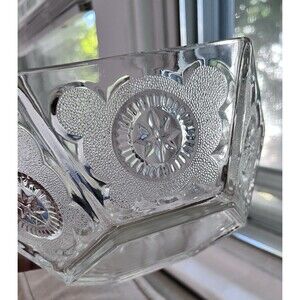 Vintage 1950's Federal Glass Americana Hexagon shaped serving bowl with Stars design on pressed glass