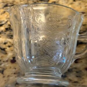 It is made of clear Depression glass, characterized by its translucent appearance.