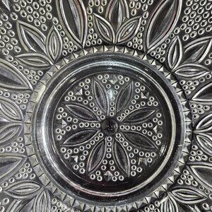 This Federal Glass Heritage large fruit bowl has amazingly survived 70 plus years. It was made somewhere between 1940 and 1955 here in good old USA. This is press glass which they called sandwich glasses. Smooth interior and raised design on the backside of the glass. Design includes scalloped top edge flower and beaded bottom of the bowl, scroll design lots beads and leaf shape on side of bowl. Very pleasing and pretty design. Measures. 10.5 inch diameter 3 1/8 inch high 4 5/8 inch base diameter. Condition is vintage but in very good condition. No chips, cracks, breaks or noticeable scratches. Just a very pretty vintage bowl that will be proud to own and display. Non smoking pet free home. ERC#5