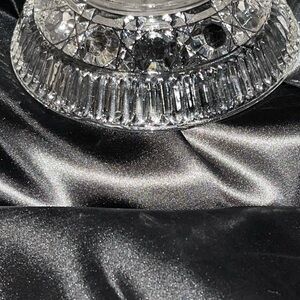Vintage 1930s Federal Glass Windsor bowl in clear pressed glass, featuring the classic Button & Cane pattern with stunning diamond-point texture. This 5” bowl adds elegant charm to any collection and is perfect for serving or display.