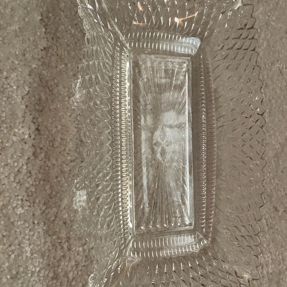 Vintage Pressed Glass Rectangular Tray Starburst Center & Diamond Point Edges. Excellent condition.