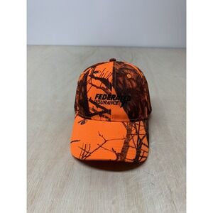Federated Orange Camo Strap Back Baseball Hat Cap Hunting Adjustable Strap.