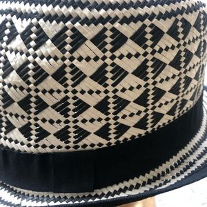 Black and white paper fabric fedora