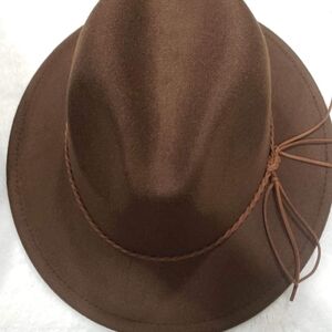 Fedora hats. Good weight to the hat. Flat wide brim. Material polyester/cotton. Hat Circumference is 57cm. Hats are for men and are adjustable for smaller hat size. And hand made. With a braided ban around the fedora (Unisex) COLORS ARE