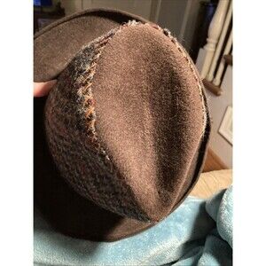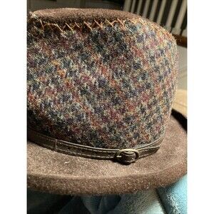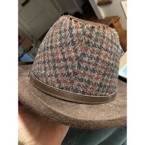 This hat is in perfect used condition with no signs of wear at all. The houndstooth print is gray checked with brown. The rest is felt wool in dark brown. The inner has a lighting band so the wool is not itchy on your head. Very stylish.