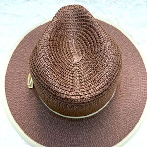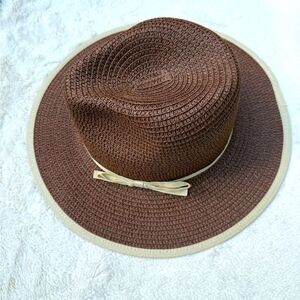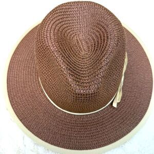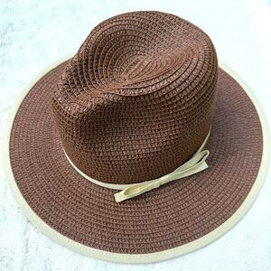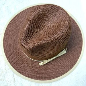 Fedora Style Brown Cream Woven Adjustable Band Sun Hat
