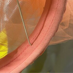 Fedora coral colored Facinator. 50’s style. Rare find. loose threads see pics.