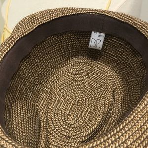 Woven fedora hat with black ribbon. Excellent condition. Smoke free home.