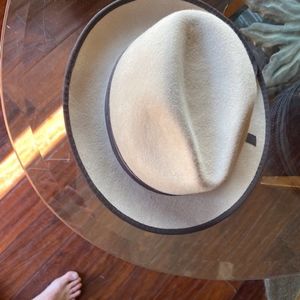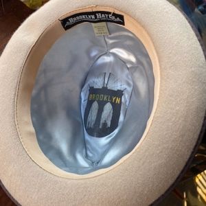 Beautiful, barely used fedora hat with silk brown band and bow, with matching brim made by Brooklyn Hats size Medium