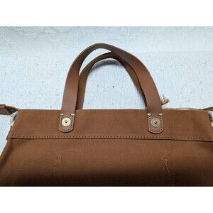 Feed brand brown "Eleanor" reusable canvas bag. Featuring large Help Feed The Children Of The World graphic print in black, (NWT) new with tags, matching leather handles, zippered closure, extra shoulder strap included so you can use it as a casual crossbody bag, heavy duty canvas material - makes it perfect to carry farmer market goodies, brass studs, very well made and ready for a clean girl to run Sunday errands.