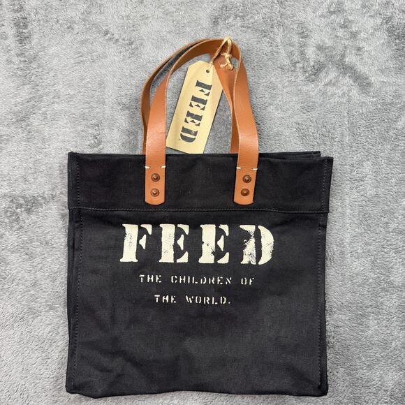 Feed Projects Canvas Tote Bag Children of the World Black Double Handle NWT