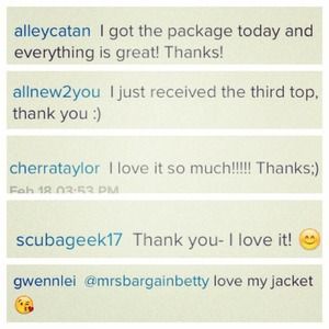 Feedback from my fellow Poshers! Feel free to post here if you have purchased an item! Also check out the photos on this listing for feedback.