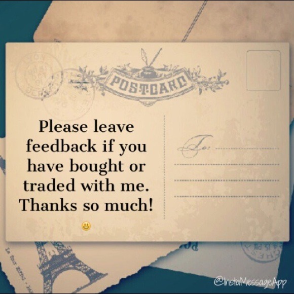 Please leave comments, and any type of feedback. Shipping, communication, packaging, ect.