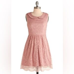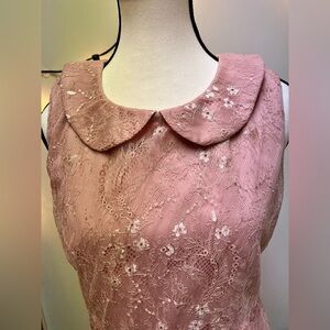 This elegant pink lace dress is perfect for special occasions. Crafted with delicate lace, it offers a charming and sophisticated look for any occasion.