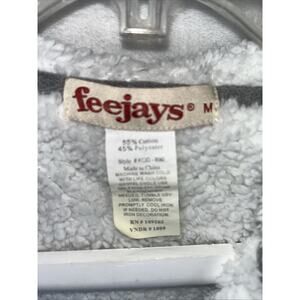 The Feejays Sherpa Lined Hoodie Zip Up California Sweatshirt Mittens Built-In Gloves in size Medium is a stylish and cozy activewear piece perfect for the winter, fall, and spring seasons. Made of faux fur fleece material inside and great sweatshirt outside, this classic retro style hoodie features a full zip closure and a hood for added warmth. The relaxed fit and heavyweight construction make it ideal for both men and women looking for a comfortable and fashionable option for colder weather. Machine washable for easy care, this hoodie is a versatile addition to any wardrobe.