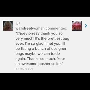 Let me just tell EVERYONE this posher is the best one I have ever found. This is my 3rd trade with her and it's always just as described and super fast shipping <3 Joey I love you :) thanks for my bag I love it! It's so cute! I hope you love your part of the trade too!